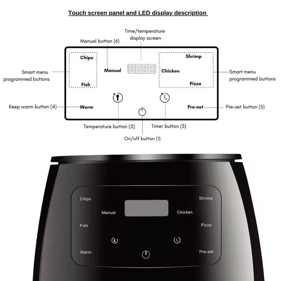 Freidora de aire multifuncional, horno inteligente con pantalla táctil, gran capacidad, electromecánica, para el hogar, 6L